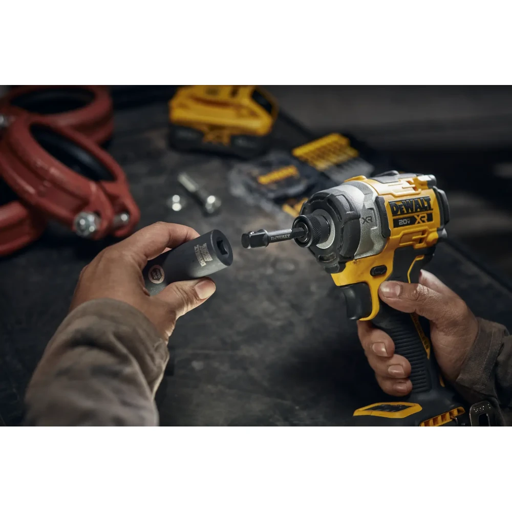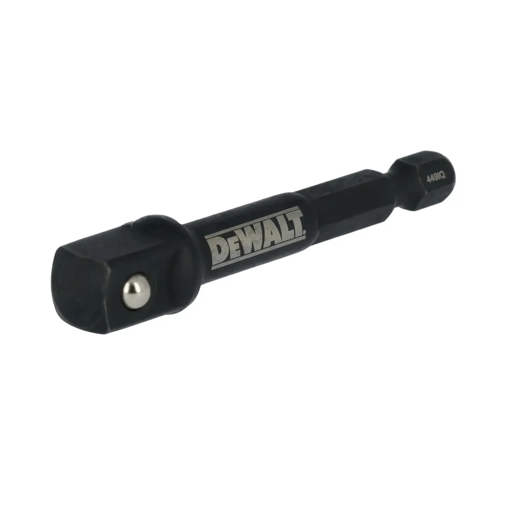 DEWALT ELITE SERIES™ 3/8″ Socket Adapter—converts 1/4″ hex to 3/8″ square drive with ball detent retention and IMPACT READY® shank.