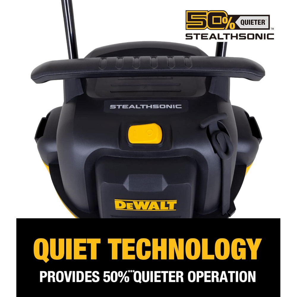 Introducing the DEWALT DXV16PA 16-Gallon STEALTHSONIC Wet & Dry Vacuum, the ultimate cleaning powerhouse engineered to tackle the toughest messes with remarkable discretion. Experience revolutionary New QUIET TECHNOLOGY that allows this robust 16-gallon unit to deliver strong suction power and airflow, yet operate an astounding 50% quieter than standard models. This makes it ideal for any environment where powerful cleanup is needed without disruptive noise.