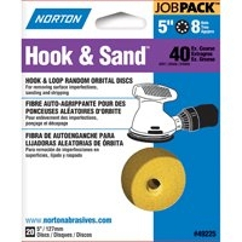 NORTON 49225 Sanding Disc, 5 in Dia, Coated, P40 Grit, Extra Coarse, Aluminum Oxide Abrasive, Paper Backing