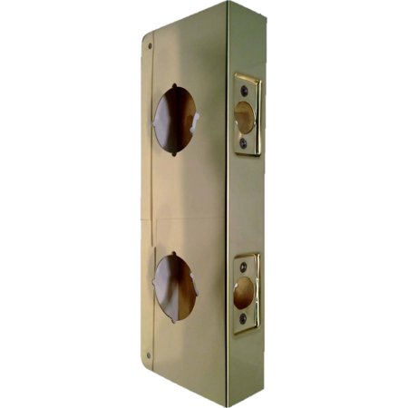 258-PB-CW 2-3/4 Backset 1-3/4 Door 4-1/4 x 12 Double Hole Wrap Around Plate with 5-1/2 center to center – Polished Brass Brass.