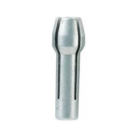 The collet features small identification rings around its shank. These rings correspond with the size of the collet: 0 rings = 1/8″, 3 rings = 3/32″, 2 rings = 1/16″, 1 ring = 1/32″, Collets are compatible with 225 flex-shaft attachment. For use with all rotary tools except discontinued models 1, 2, and series 1 or earlier of discontinued models 260, 270 and 280.