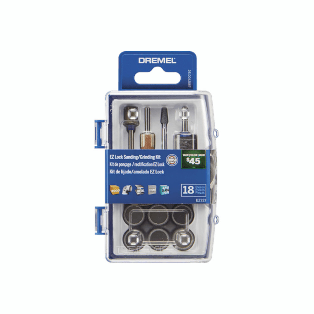 Make the most of your Dremel rotary tools by using our innovative & extensive line of rotary accessories and attachments. Whatever your project, we’ve got the perfect solution for you. Dremel accessories fit inside your rotary tool to extend it’s versatility. Whether you’re looking to carve, engrave, cut, sand or grind, there is a Dremel accessory to get the job done with pinpoint precision. That’s why our purpose-built Dremel accessories let you get your project right down to the last detail. Dremel accessories are also color-coded into usage categories to make it easier for you to select the right accessory for your project. Turn your Dremel rotary tool into a powerful sanding machine with the 18-piece EZ Lock™ Sanding & Grinding Kit. Ideal for sharpening, deburring and general purpose grinding or shape & smooth rough edges on wood, rubber, metals. The versatile kit features the EZ Lock accessory system allowing for quick and easy accessory changes. Kit includes a reusable storage box to keep your accessories organized. Compatible with all Dremel corded and cordless rotary tools. There’s no need to hunt for the right collet, all Dremel rotary accessories feature a 1/8” standard shank.