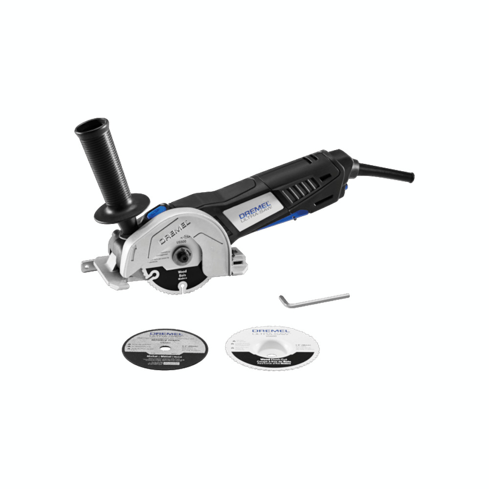 The Dremel Ultra-Saw™ kit is designed for users wanting a multi-saw that can do everything the Dremel Saw-Max can do, and more. With a 7.5 Amp motor and a durable drive train, the Ultra-Saw™ has more power for making long cuts. A metal foot and guard resists the heat generated by heavy-duty jobs like grinding and cutting metal. Large, 3.5- and 4 In. cutting wheels provide fast cutting speeds and improved performance in a wide variety of materials. Plus, with our exclusive accessories, this robust Dremel saw kit offers the added ability to perform surface preparation tasks like removing paint, rust and thin-set mortar.