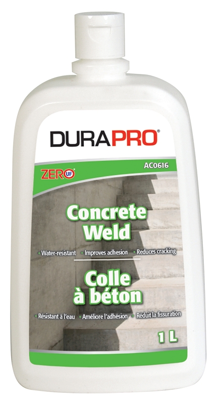 Dura Pro AC 0616 is synthetic resin for interior or exterior use, designed to increase the bonding properties of concrete. It promotes intercoat adhesion between old and new concrete. Used as an additive to Portland cement mix, AC 0616 improves adhesion and reduce cracking in toppings, brick walls, patching or resurfacing concrete walls, floors or ramps. May also be used for stucco and plaster applications.