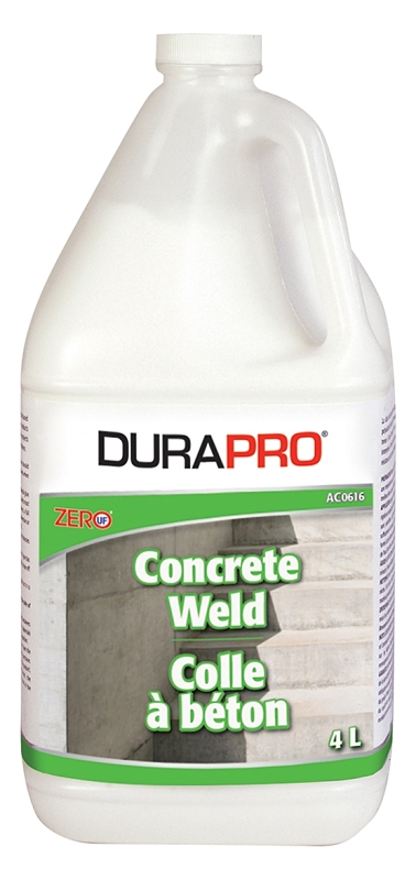 Dura Pro AC 0616 is synthetic resin for interior or exterior use, designed to increase the bonding properties of concrete. It promotes intercoat adhesion between old and new concrete. Used as an additive to Portland cement mix, AC 0616 improves adhesion and reduce cracking in toppings, brick walls, patching or resurfacing concrete walls, floors or ramps. May also be used for stucco and plaster applications.