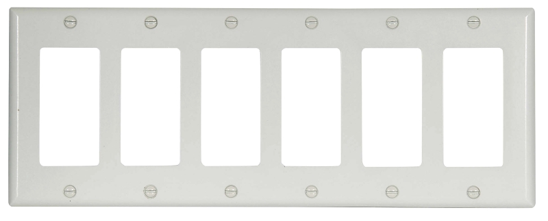 Eaton 2166W-BOX Wallplate, 4-1/2 in L, 11.813 in W, 6-Gang, Thermoset, White