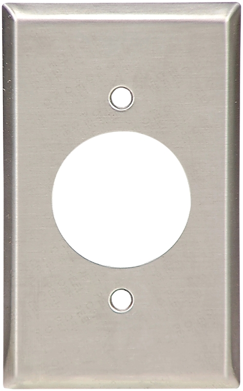 Eaton Power Outlet and Locking Wallplate, Standard, Number of Gangs: 1, Screw Mounting, Stainless Steel, Brushed Satin, Hole Size: 1.59 in, 4-1/2 in L, 2-3/4 in W, 0.032 in Thick