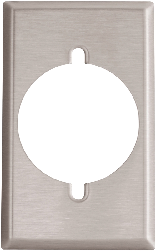 Eaton Power Outlet Wallplate, Standard-Size, Number of Gangs: 1, Screw Mounting, Stainless Steel, Brushed Satin, Hole Size: 2.15 in, 5-1/4 in L, 3-3/4 in W, 1/4 in Thick