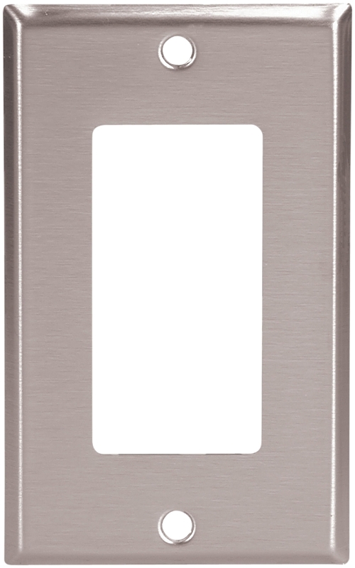 Standard size wallplates stainless steel decorator. Great non-corrosive and non-magnetic properties for applications needing protection from those elements. 302/304 stainless steel alloy contains 18% chromium and 8% nickel for corrosion resistance. Stamped from 0.032 in (0.81 mm) thick material. Horizontally satin-brushed surface finish resists finger prints. Matching stainless steel mounting screws provided.