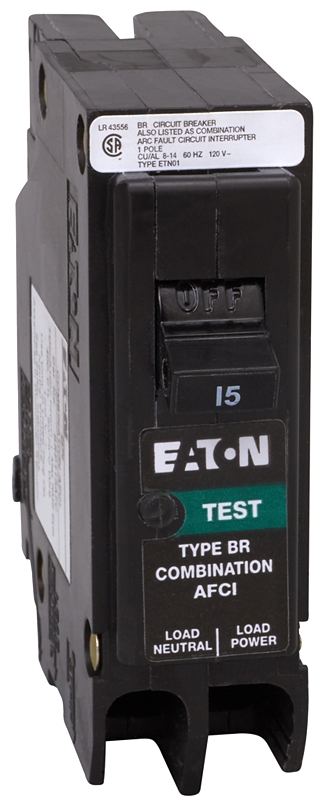 Eaton BRP115AFC Circuit Breaker, AFCI, Combination, Type BR, 15 A, 1-Pole, 120/240 VAC, Long Time, Instantaneous Trip