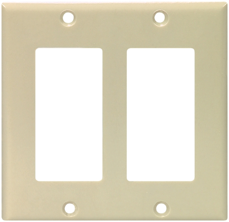 Molded from non-flammable thermoset. Flush fitting, warp-resistant design. Matching screws provided. High gloss finish is soil-resistant. Standard size of 4-1/2 in x 4.563 in, boxed.