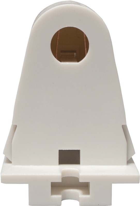 White slimline lamp holders. For replacement use in fluorescent lighting fixtures as well as enclosed outdoor signs. Molded of white thermoset plastic for appearance and durability. UL listed. Temperature rating of -40 to 65 deg C.