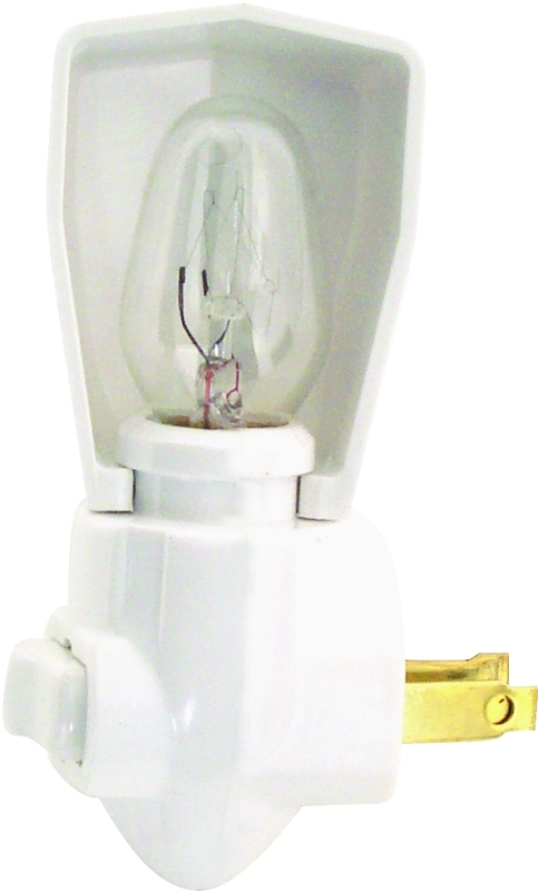 Night lights with soft action rocker switch. Incandescent 4 W bulb – 3000 hr lamp life. Body and shade molded of heat-resistant plastic. Shade can rotate.