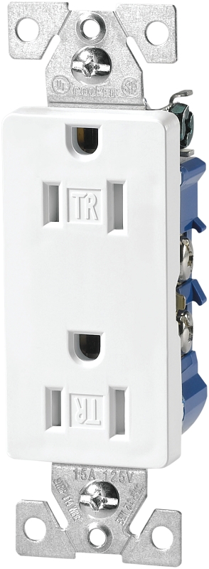 Eaton Wiring Devices TR1107W Duplex Receptacle, 15 A, 2-Pole, 5-15R, White