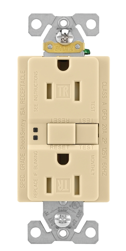 Eaton Wiring Devices TRSGF15V-BOX GFCI Duplex Receptacle, 2 -Pole, 15 A, 125 V, Back, Side Wiring, NEMA: 5-15R