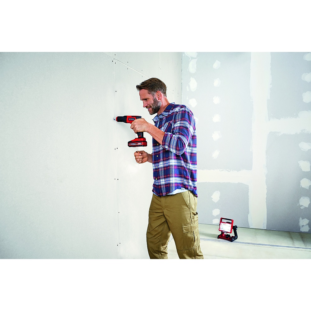 The Einhell cordless drywall screwdriver TE-DY 18 Li (4259985) delivers precise and powerful performance during renovation work, without find electricity. As a member of the Power X-Change family, all batteries in this system series can be used and combined without limits. The exact screw depth is carried out by means of an adjustable depth stop. The integrated pressure coupling also allows user-friendly screw-driving. The short, lightweight design with ergonomically shaped softgrip surfaces ensures a pleasant and productive working process that the experienced DIY enthusiast appreciates. Thanks to the LED lighting of the cordless drywall screwdriver, it can also work well in dark areas. The bit change takes place quickly and intuitively through the 1/4″ (6.35 mm) magnetic bit holder. The equipment includes a practical belt clip, which enables intermediate storage of the cordless drywall screwdriver. Comes in the practical and universal E-Box. For optimum results, the use of a 2.0 Ah or 2.5 Ah Einhell rechargeable battery (or higher) is recommended. Battery and charger sold separately.