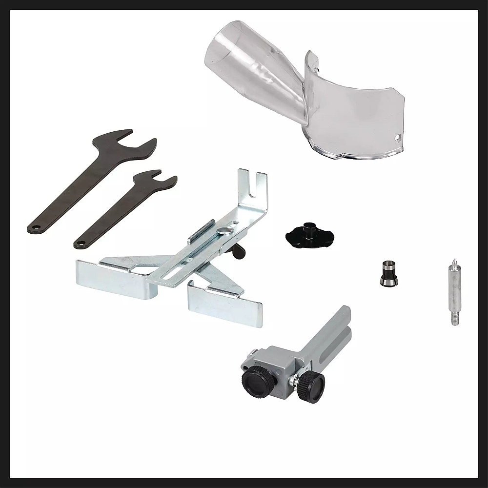 The Einhell cordless compact router 4350415 (TP-ET 18 Li BL) is a versatile tool for DIY work. As a member of the Power X-Change family, it provides cordless freedom far away from any plug socket in the home, workshop or garage. The compact router is powered by the Einhell PurePOWER brushless motor. This brushless motor offers more power and a longer running time than conventional carbon brush motors. After registering online, the brushless motor comes with a 10-year warranty. Equipped with an adjustable routing depth adjustment, and a 1/4″ (6.35 mm) collet. The high-quality aluminum design allows precise routing. The spindle lock offers easy tool changes, while the LED light ensures optimum illumination of the working area. The plastic base plate insert protects the surface of the workpiece. An trimmer guide roller attachment is provided for chamfering edges. It is comfortable to work with thanks to the ergonomic handle with Softgrip. Comes with the edge guide, compass point, trimmer guide roller, template guide, as well as a dust chute, suitable for Einhell wet/dry vacuums. For optimum results, the use of a 2.0 Ah or 2.5 Ah Einhell rechargeable battery (or higher) is recommended. Battery and charger sold separately.