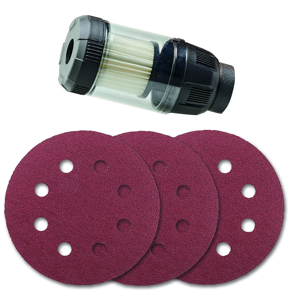 The Einhell Professional 5″ (127 mm) cordless random orbital sander 4462021 (TP-RS 18/32 Li BL ) is a sanding tool you can depend on for intensive use in the workshop. The orbital oscillation ensures the smoothest finish with high sanding performance and high material removal rates. The power can be matched to the material and job at hand by means of electronic speed control. As a member of the Power X-Change family, the cordless sander can be used with any battery and charger from across the system. At the heart of the tool is a Einhell PurePOWER brushless motor. This brushless motor offers more power and a longer running time than conventional carbon brush motors. Once you register online, the brushless motor has a 10-year warranty. The low-profile design of the random orbital sander ensures optimal handling, thanks to which the tool can be held close to the workpiece. For optimal control over the tool, the ergonomically shaped sander has softgrip surfaces and a removable auxiliary handle. The Ø 5″ (127 mm) sanding disc of the cordless random orbital sander oscillates in a 1/8″ (3.2 mm) diameter circle. The sanding disc attaches securely to the sanding plate by means of a micro hook-and-loop system, and is easy to change. For professional use without mess, the sander has an internal dust extraction system with dust collector box and removable pleated filter. Alternatively, an external dust extraction system can also be attached to the adaptor to connect a wet/dry vacuum. The on/off switch is dust-proof. Comes with 3 sanding discs (60, 80 and 120 Grit). For optimum results, the use of a 2.0 Ah or 2.5 Ah Einhell rechargeable battery (or higher) is recommended. Battery and charger sold separately.
