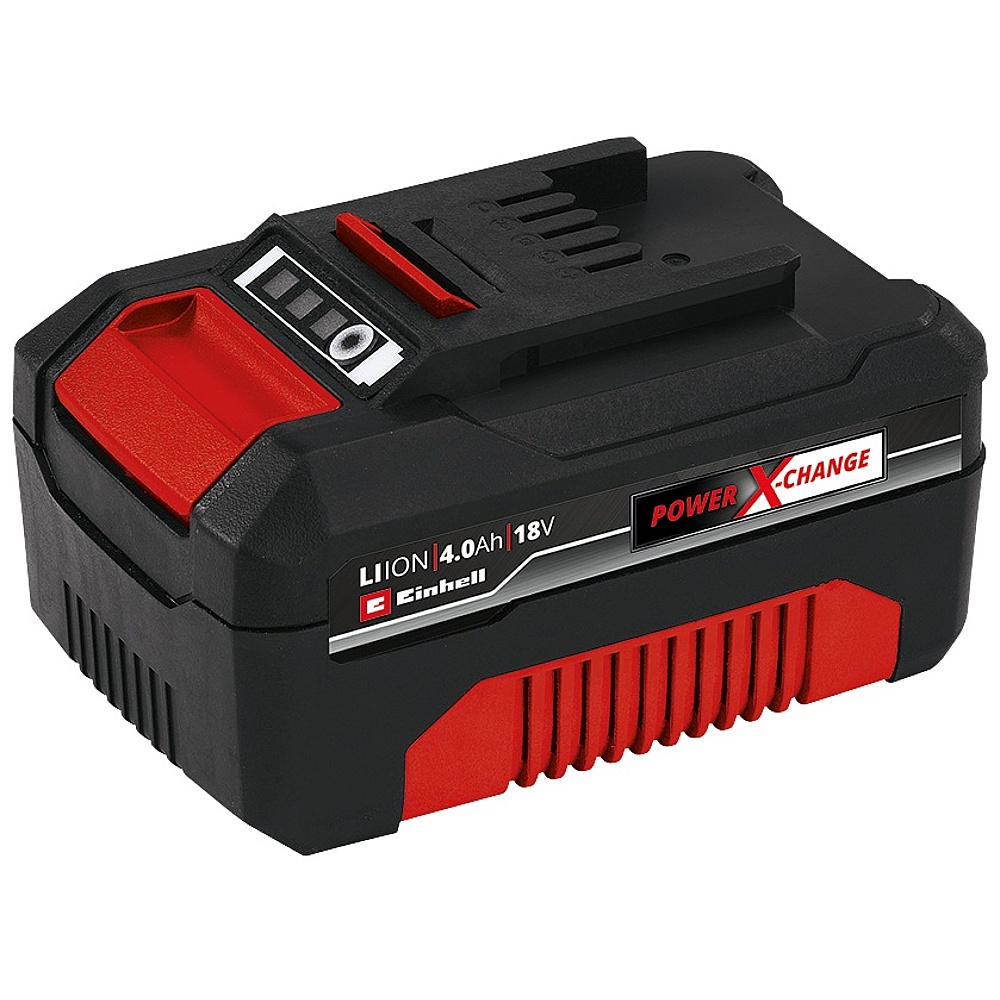 The Einhell 18V 2x 4.0 Ah PXC Starter Kit is the ideal basis for starting or expanding the Power X-Change range in your home. The Starter Kit with two 18V 4.0 Ah Power X-Change rechargeable batteries and high-speed battery charger is a member of the multifunctional and completely interchangeable Power X-Change rechargeable battery system from Einhell. The Power X-Change rechargeable batteries can be used universally for supplying power and endurance to every cordless tool from the entire garden and workshop product family. The chargers from the series can also be used universally for every PXC rechargeable battery. The advantages to the customer are obvious: A single rechargeable battery and a single charger for all tools not only saves significant costs of buying, universal use also helps protect the environment and provides flexibility in the home and garden too. It also eliminates the untidiness and chaos of having different rechargeable batteries and chargers for each separate tool. For high Power, long + sustained working time and to use 36 V (2x 18 V) devices 2 Batteries are included. The high-quality rechargeable battery resists the memory effect and the self-discharging normally associated with batteries, to deliver constant high power. The 18 V 4.0 Ah PXC PLUS is a rechargeable battery from the Power X-Change family and is also suitable for TWIN-PACK use for 36 V applications. The ABS process-controlled active battery management system has a microprocessor for permanently monitoring the battery parameters. It therefore ensures maximum safety, optimum tool performance, maximum operating time and a maximum service life. The current charge level can be checked on a 3-step LED display. The housing is designed to be resistant to dust, corrosion and mechanical influences. The rubber coating provides high impact protection for the battery along with a good grip. There is a trough handle to enable the battery to be removed from each tool with ease. Parallel charging of both batteries saves space, provides fast and high availability and leads to continuous working, especially with 2x 18V devices. There are integrated suspension eyelets for easily hanging on the wall. The high-speed charging technology means short charging times, and for optimum charging and maximum safety the battery is permanently monitored by an intelligent charging management system. There is a refresh mode for reactivating batteries which have undergone exhaustive discharge. All up-to-the-moment information is provided by the 6-stage charging level LED indicator.