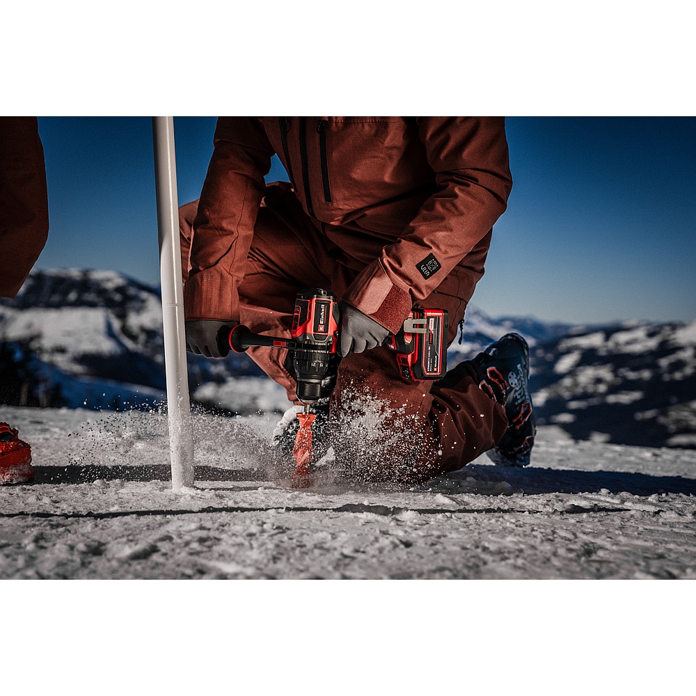 The Einhell 1/2″ (13 mm) Professional cordless hammer drill/driver 4514380 (TP-CD 18/120 Li-i BL) is the perfect addition to any ambitious DIY expert’s workshop. As part of the Power X-Change family, it is compatible with every charger and battery in the innovative system. The tool is powered by an Einhell brushless motor. This brushless motor offers more power and a longer runtime than conventional carbon brush motors. Once you register online, the brushless motor has a 10-year warranty. With its hammer drilling function, it supports professional craftsman when working on resistant materials such as stone or concrete. In addition, the hammer drill/driver has a 2-speed gearbox that allows fast screwing, drilling and powerful impact drilling. The torque-slip clutch prevents screws from being overtightened. The hard torque of 1,062 in/lbs (88 ft/lbs / 120 Nm) is adjustable over 21+1+1 torque levels. The hammer drill/driver also offers a drilling stage and an impact drilling stage. The variable speed electronics support application- and material-appropriate work. The single-sleeve 1/2″ (13 mm) metal keyless chuck with locking function allows a quick and easy change of the tool. Safe and wrist-friendly operation is ensured by the additional handle with softgrip. The LED light provides a good view of the work area even in poor visibility. For safe storage, the hammer drill/driver can be easily attached to the belt with the belt clip. For optimum results, the use of a 2.0 Ah or 2.5 Ah Einhell rechargeable battery (or higher) is recommended. Battery and charger sold separately.