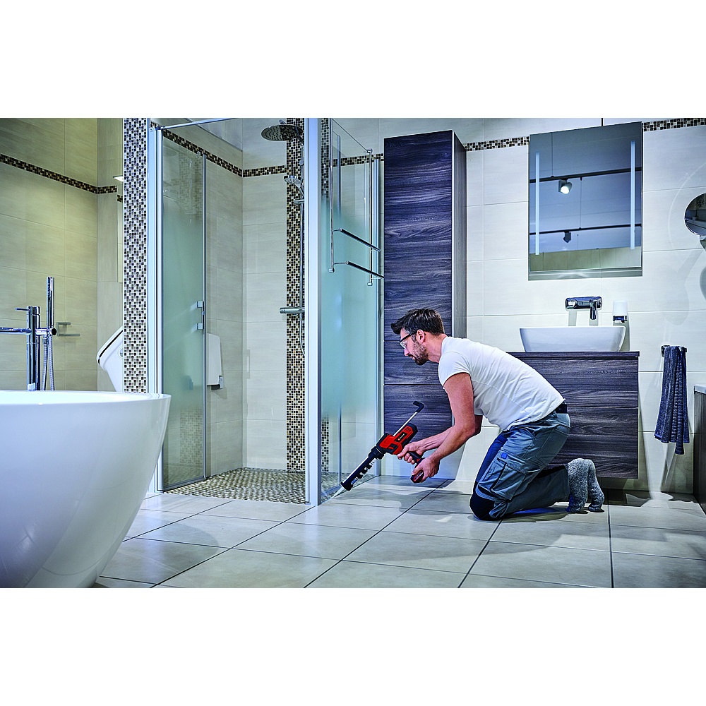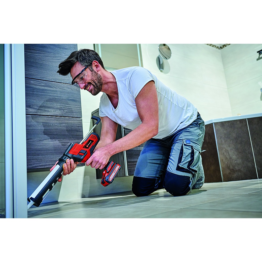 The Einhell Cordless cartridge gun 4522251 (TE-SG 18/10 Li) is the ideal addition to the basic range in the workshop, but also for the craft room and especially when regular repairs or major renovation and refurbishment work is required. As a member of the flexible Power X-Change family and due to its slim design, the handy cordless caulk & adhesive gun can be used wherever it is needed. The Cordless cartridge gun is suitable for all commercially available 310 ml (10.5 oz) tubes. The robust materials ensure longevity even in adverse conditions and for regular use, and the softgrip provides a firm, secure grip during operation. The cartridge gun has a maximum squeezing force of up to 450 lbf, a uniform pattern is obtained by the adjustable squeezing speed with an adjusting wheel and a pressure switch. The rotational speed can be adapted to the different materials and quantities with which work is carried thanks to the individual adjustment. The return mechanism eliminates dripping and sticking on surfaces the gun is placed on. The bright LED light offers an optimal view of the application area, even in dark areas. For optimum results, the use of the 2.5 Ah Einhell rechargeable battery or higher is recommended. Battery and charger sold separately.