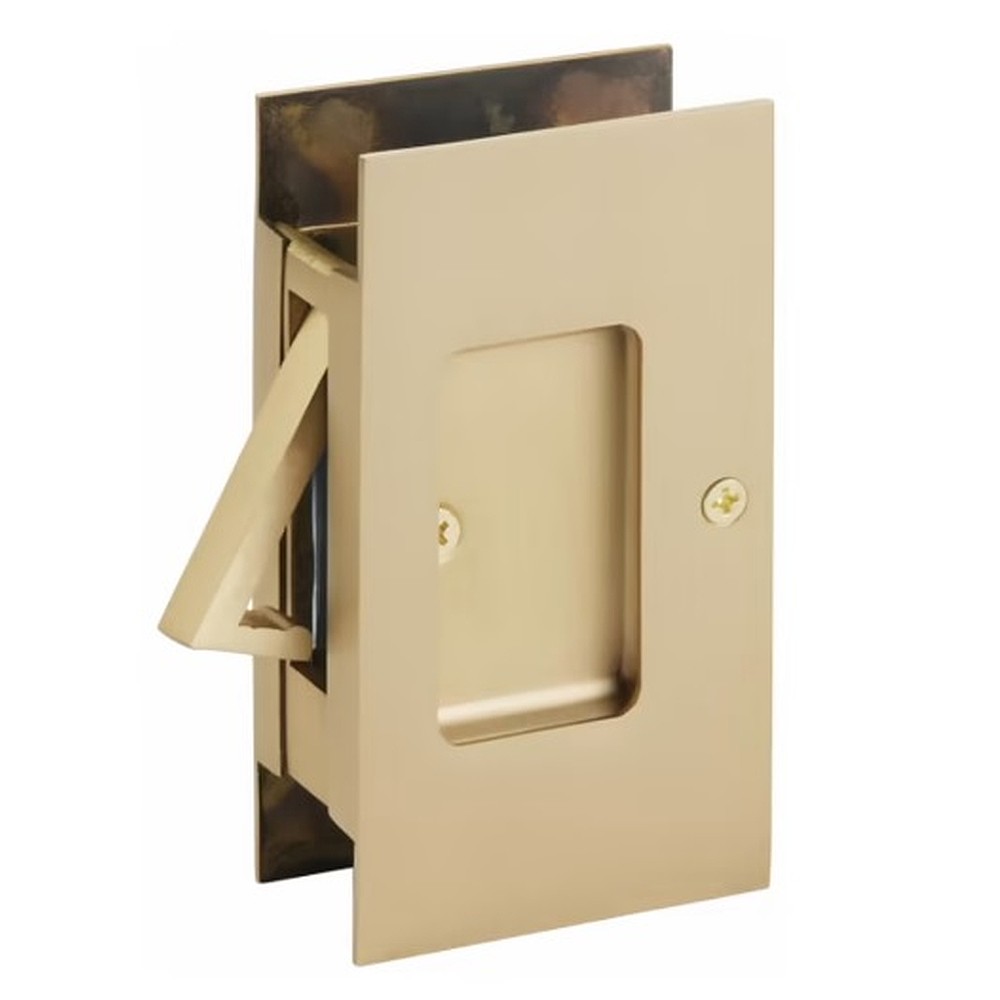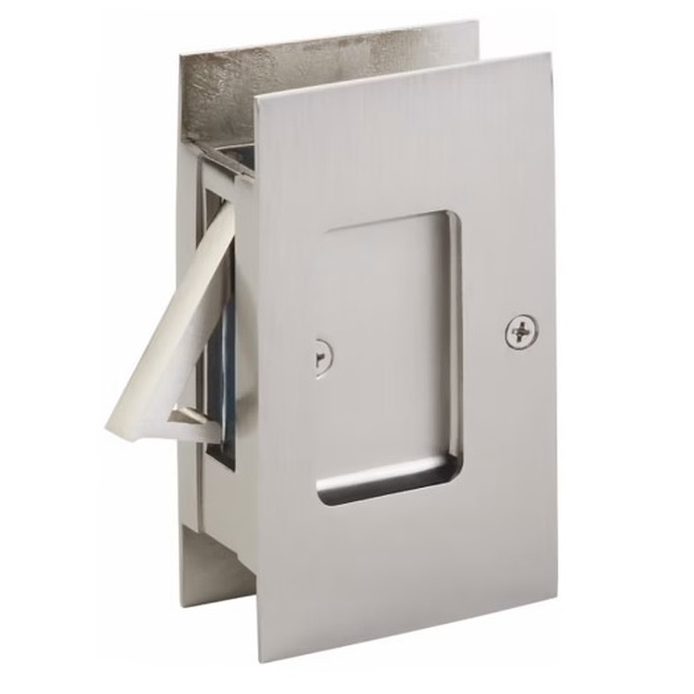Designed to fit a standard notched pocket door prep with a height of 3-1/8″ and a depth of 1-15/16″, the Modern Rectangular Pocket Door Lock fits a door thickness of 1-3/8″ to 1-3/4″.
