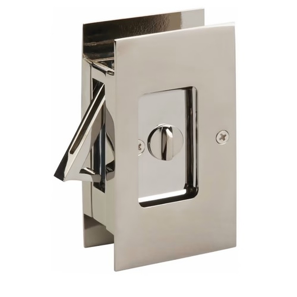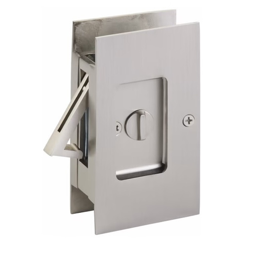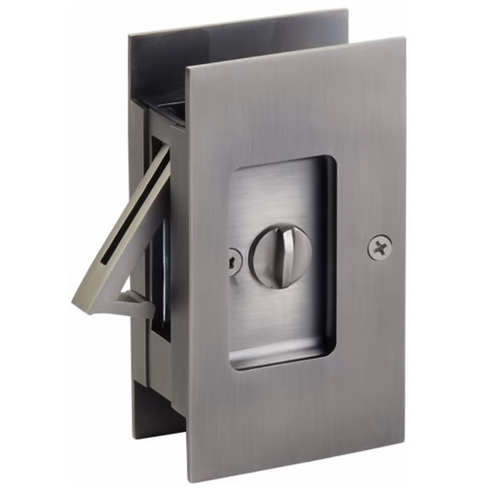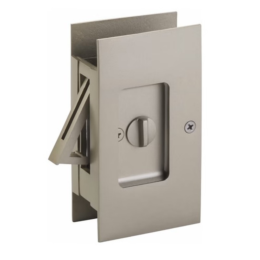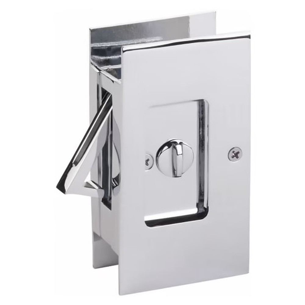 Designed to fit a standard notched pocket door prep with a height of 3-1/8″ and a depth of 1-15/16″, the Modern Rectangular Pocket Door Lock fits a door thickness of 1-3/8″ to 1-3/4″.