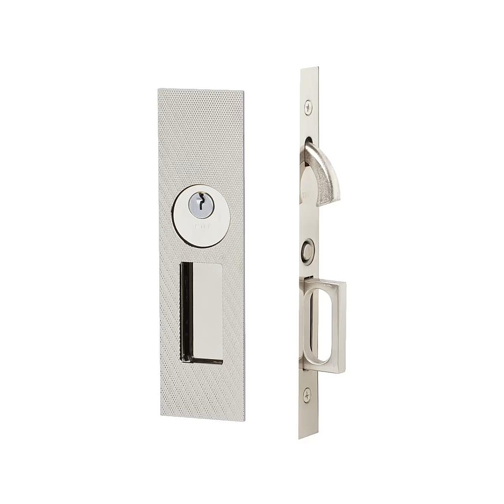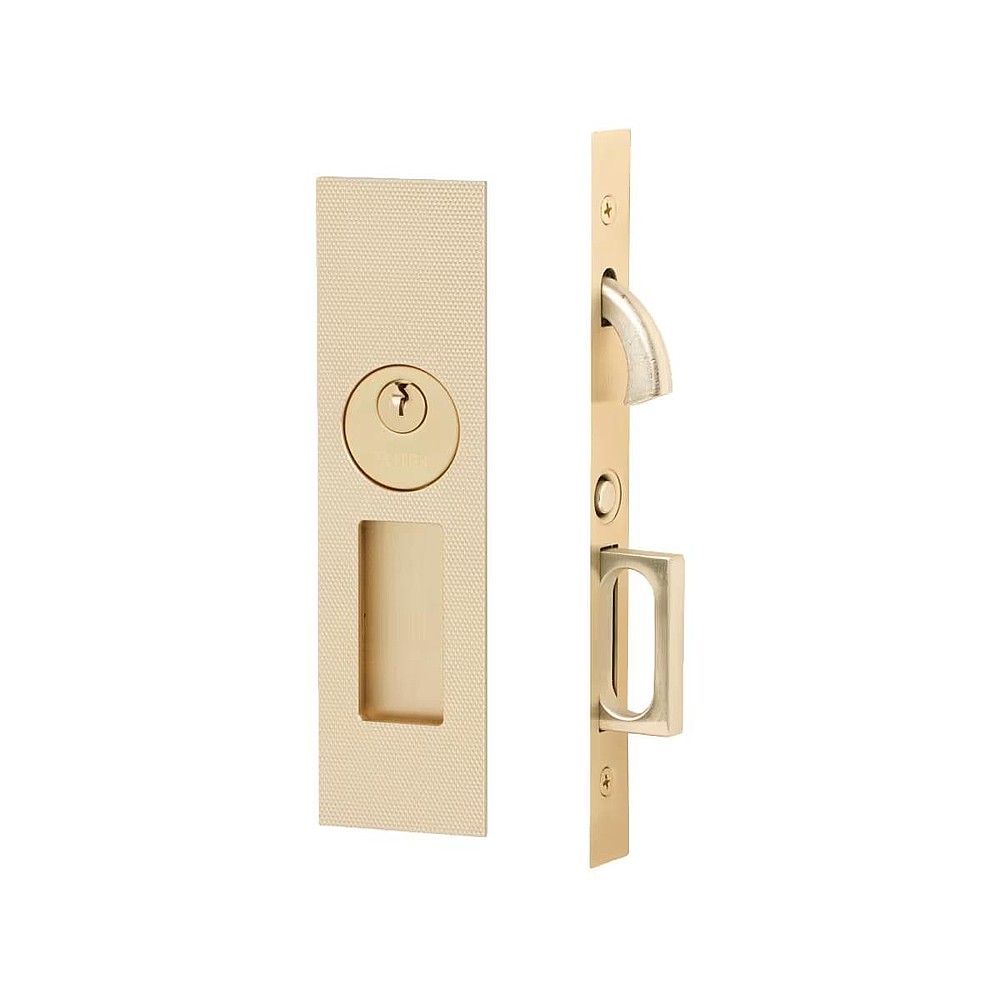This updated design has a d-ring thumb turn for easy operation and a through-bolt lock body for quick installation. Give your pocket doors a clean, contemporary trim style with a high-quality lock.