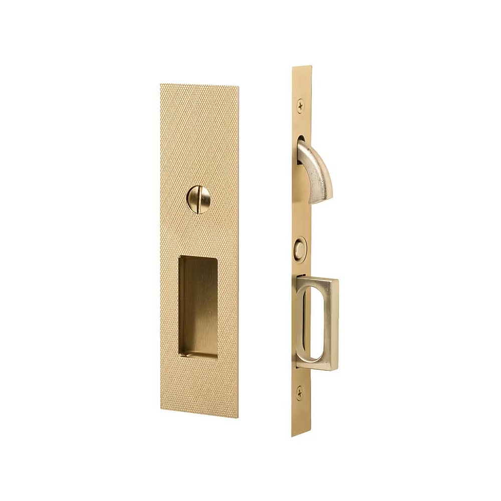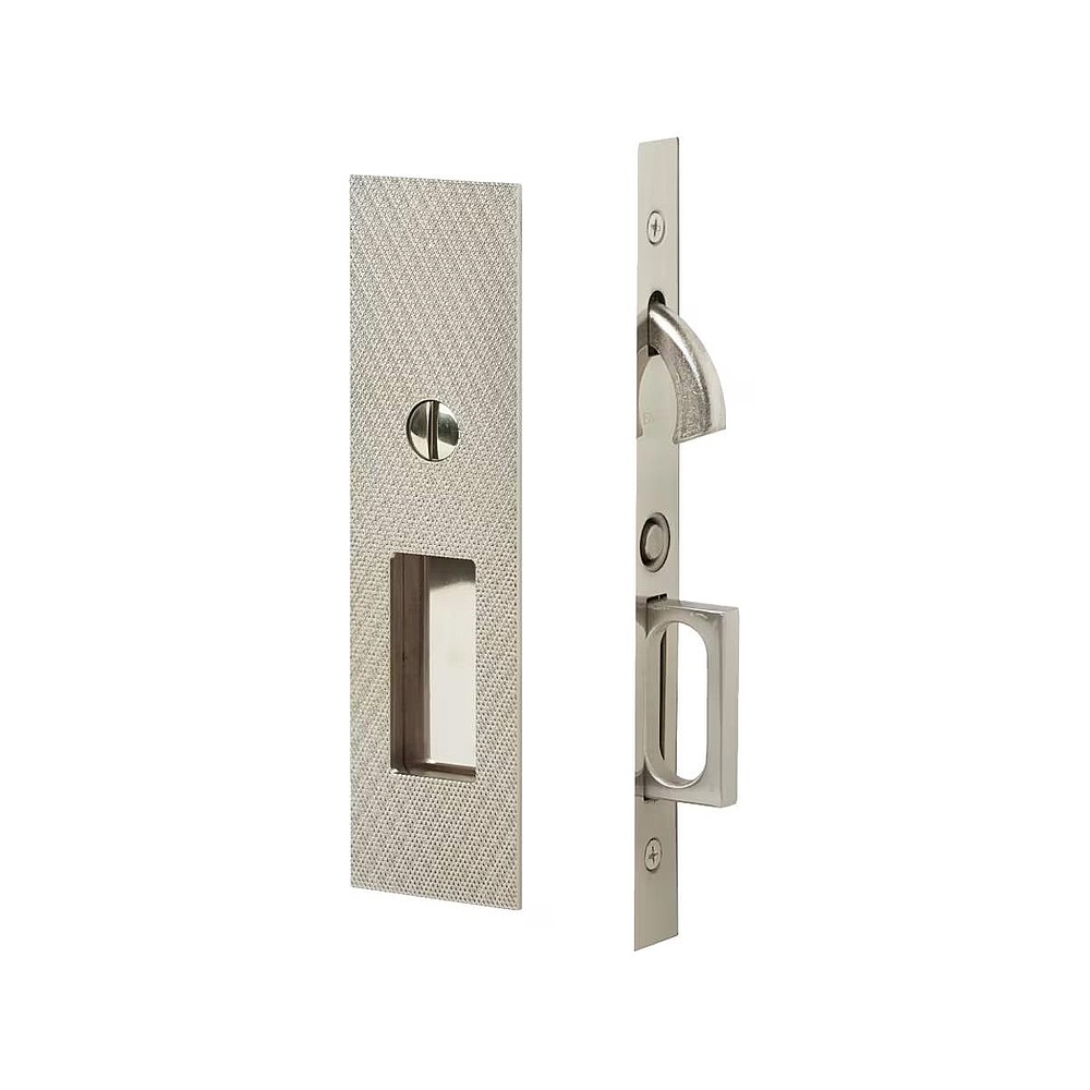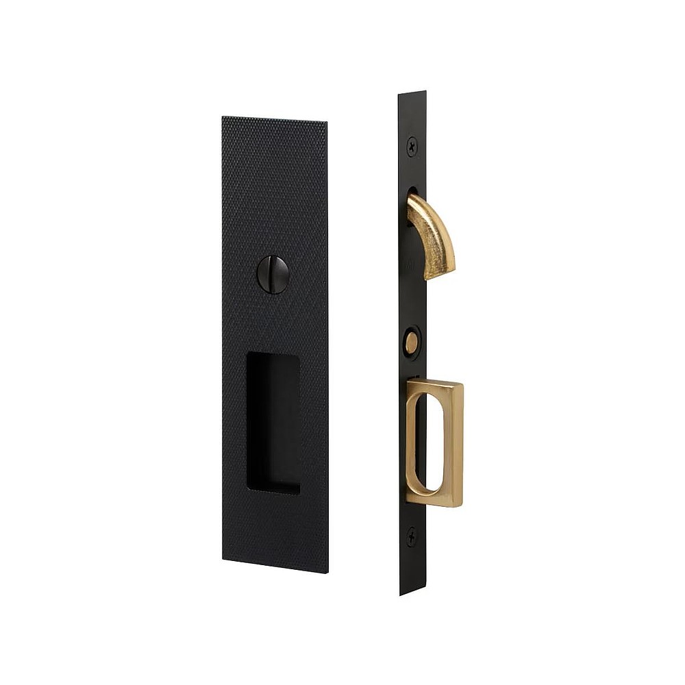 This updated design has a d-ring thumb turn for easy operation and a through-bolt lock body for quick installation. Give your pocket doors a clean, contemporary trim style with a high-quality lock.