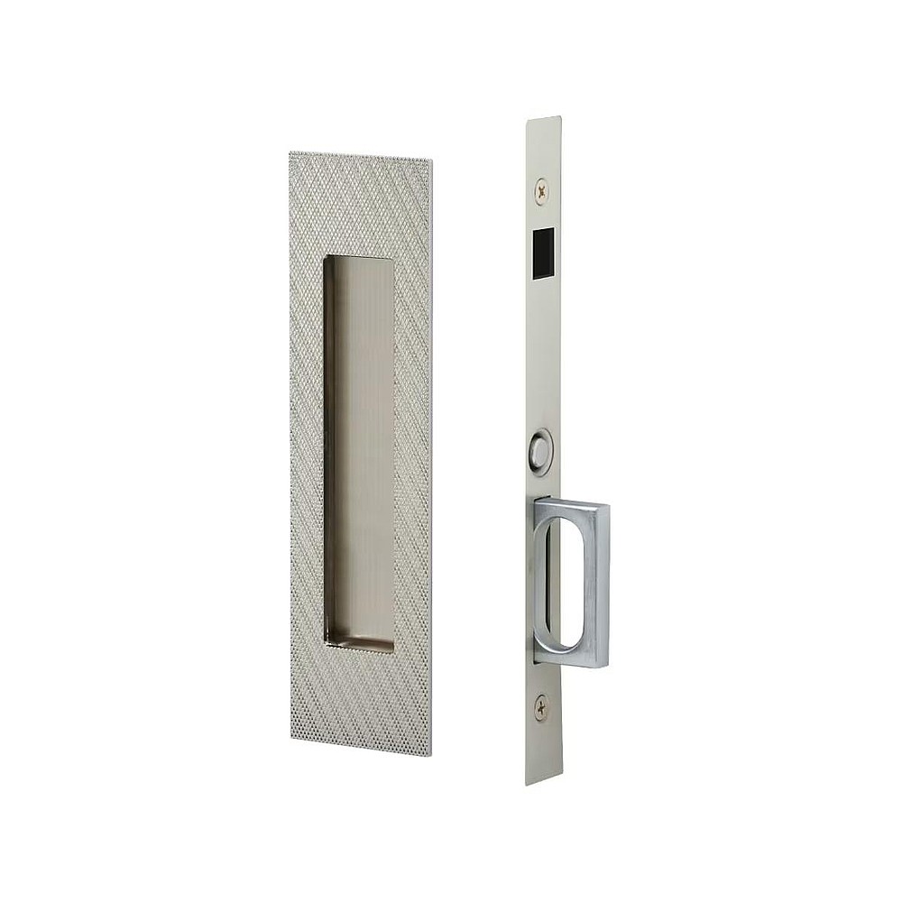 This updated design has a d-ring thumb turn for easy operation and a through-bolt lock body for quick installation. Give your pocket doors a clean, contemporary trim style with a high-quality lock.