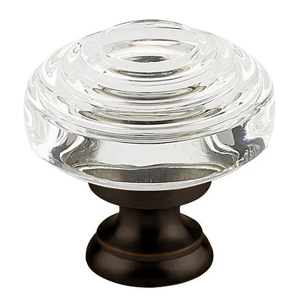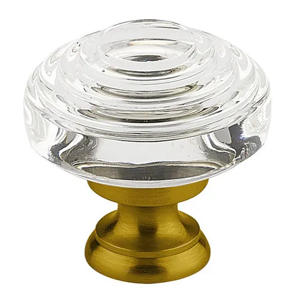 The Deco knob is a true testament to the Art Deco era, featuring a design that channels the iconic style of that period with its stepped glass appearance. Available in 2 widths, this knob offers a perfect blend of function and elegance for your interior decor. The clear glass knob, accentuated by a transitional brass base that is available in 10 finishes, is a striking statement piece that beautifully marries the past and the present, adding a touch of timeless sophistication to any space.