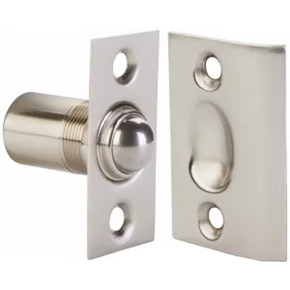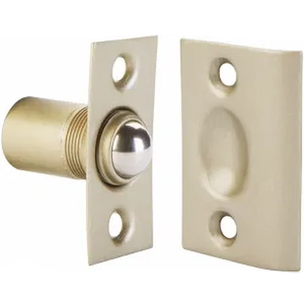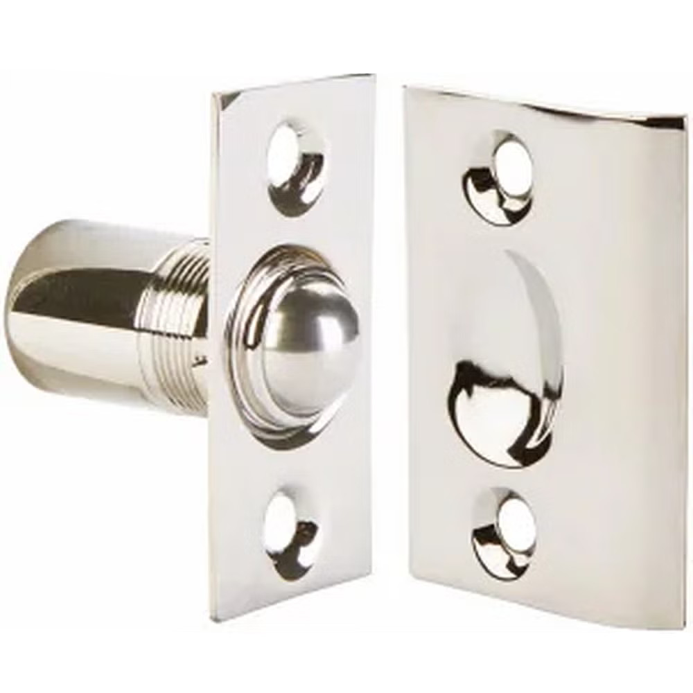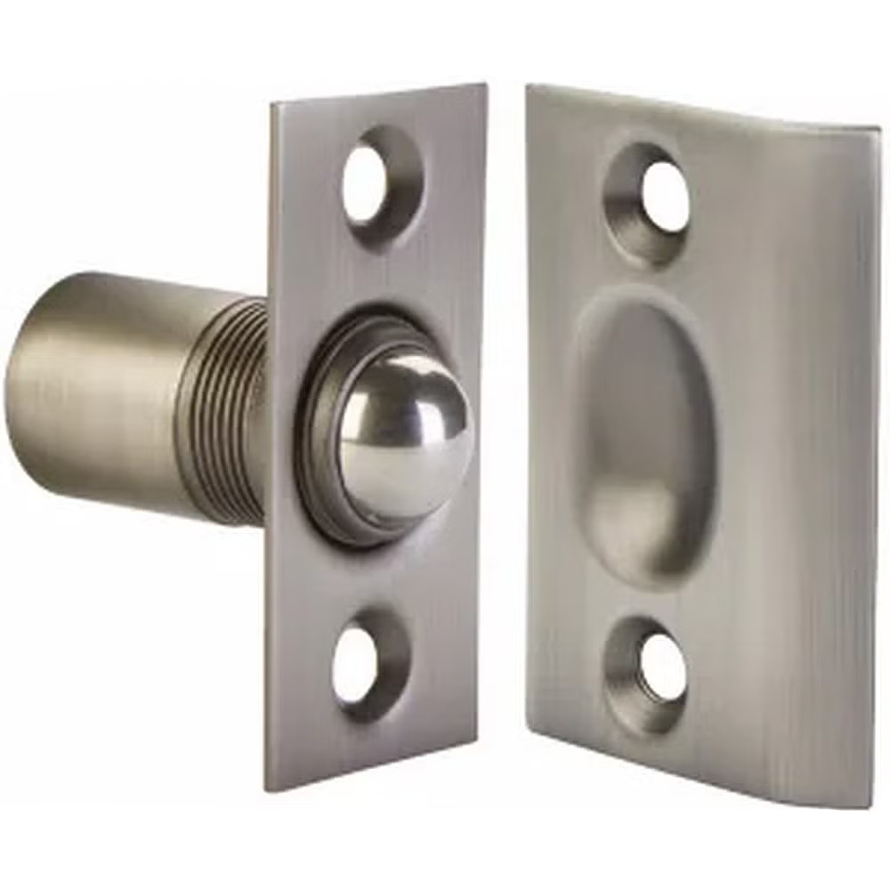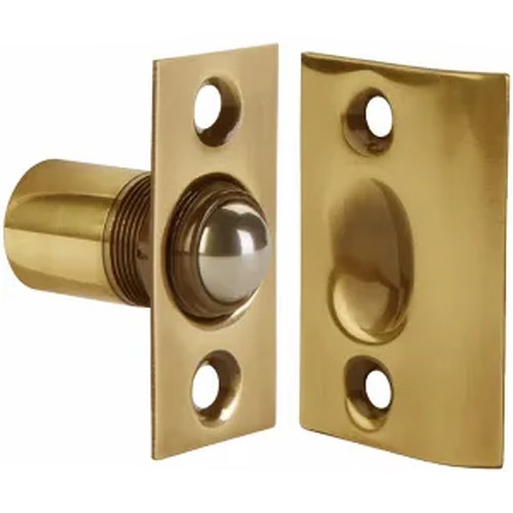 Often paired with large pivot entry doors or doors that include dummy knobs, a ball catch will hold a door in place without having to initiate a deadbolt or latch. They are usually installed on top of a door and are especially common for interior French doors or double dummy closet doors. With an overall height of 2-1/8″, the Ball Catch can easily be a subtle and hidden component or a notable detail on your doors. Our Ball Catches are available in all 12 of our bronze and brass finishes and come supplied with strike plates and finish matching screws.