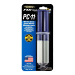 PC-11® thrives in wet environments. It is resistant to water whether it is fresh or salt. Thick consistency like PC-7® and long open time (30 min). Work horizontal or vertical, indoor or outdoor. Wet, dry or under water. Whether you are working on an area where you just can’t remove water and moisture or you want the white color for your repair, PC-11® is your choice. Choose PC-11® for ceramic repairs, pools and spas, fiberglass boats, tubs and sinks, stock tanks and thousands of other repairs. It has excellent adhesive properties bonding metals, fiberglass, wood, tile and some plastics such as ABS and rigid PVC. Ample open time allows tooling or positioning in order to tackle larger and challenging jobs. When mixed, the epoxy, part A (white) and the hardener part B (lt. blue) react to form a bond of tremendous strength and flexibility. The PC-11® formulation is slow curing, but slow can be a good thing especially for large tasks.