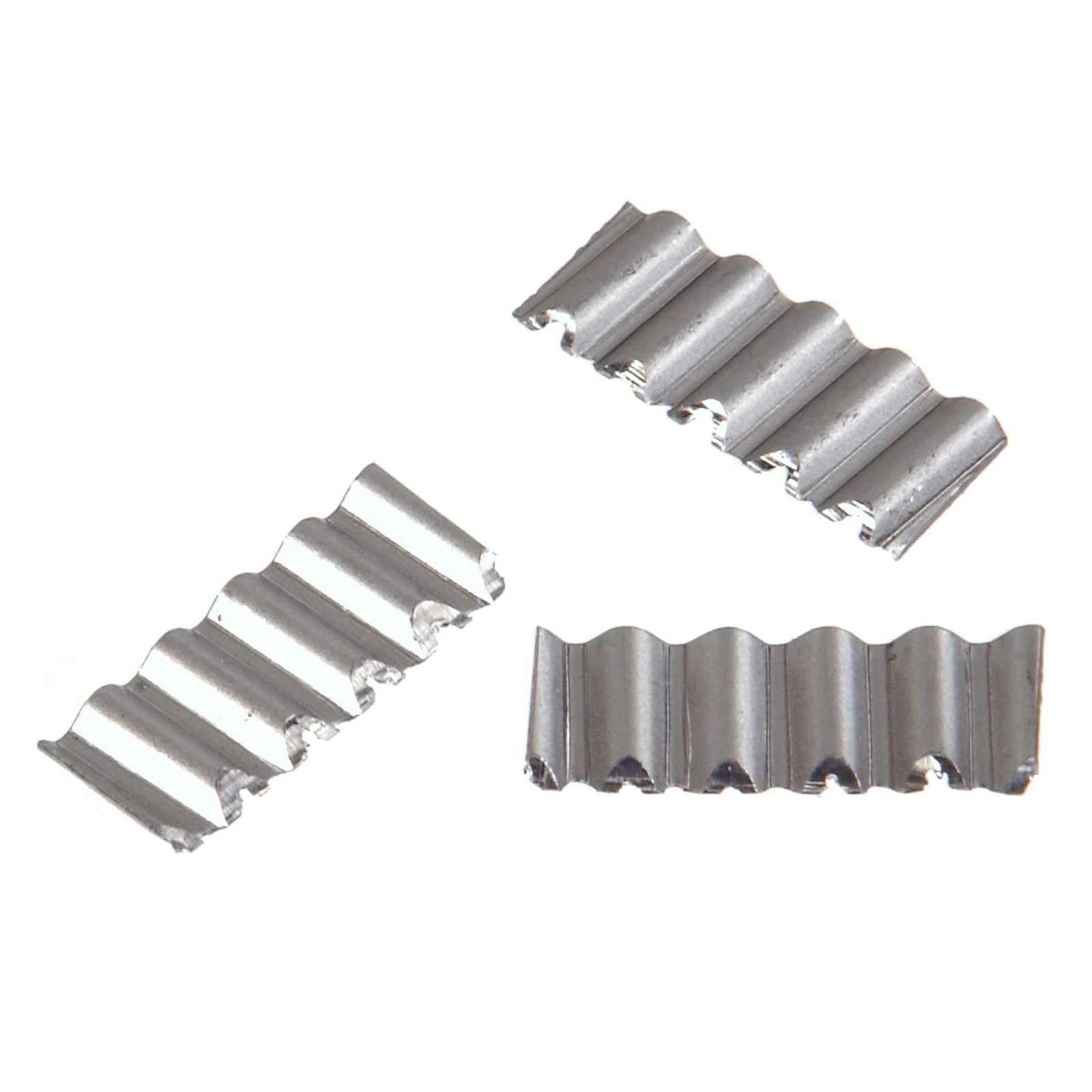 A joint fastener is a thin corrugated strip of steel that can be hammered into a wood joint to fasten it. It has a sharp side that is hammered into the wood joint. This type of joint fastener is the most common fastener used for joining mitred joints.