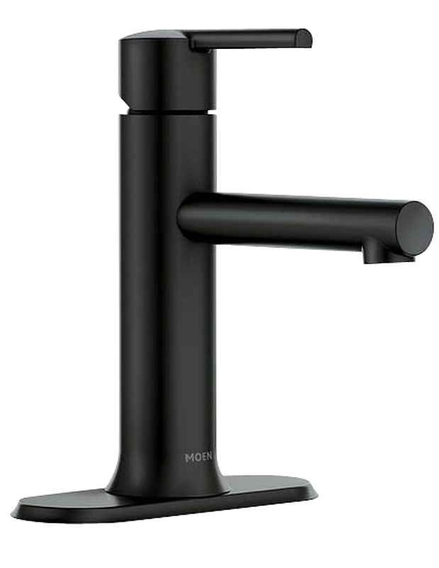 Moen Bathroom Faucet, 3/8 in Connection, Compression Connection, 1.2 gpm, 60 psi, Deck Plate Size: 1-1/8 in, Spout Type: High Arc, Spout Reach: 5 in, Spout Height: 4-1/8 in, Lever Handle, Number of Faucet Handles: 1, Metal, Matte Black, Matte Black, Number of Faucet Holes: 1, 3, Faucet Centers: 4 in, Faucet Hole Size: 1-1/4 in, Dimensions: 7-7/16 in H x 5-7/8 in W, Includes: Push-Down Drain Assembly