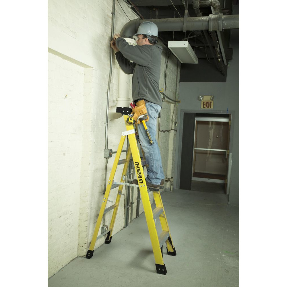 FeatherLite FXS6906 6ft 2-in-1 Cross X-Step Fiberglass Ladder – Black & Yellow