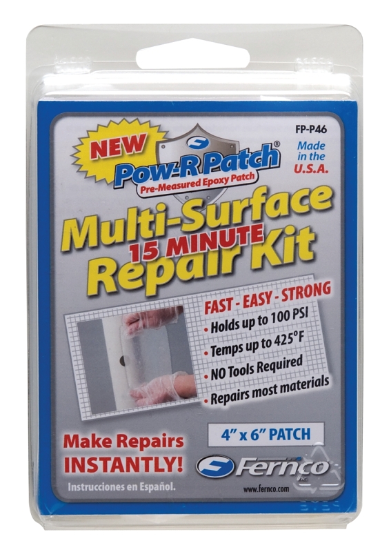 Fernco Pow-R Patch Multi-Surface Epoxy Patch Repair Kit, Specifications: 4 x 6 in Size, Includes: Fiberglass Cloth, Mixing Pouch, Gloves and Installation Instructions