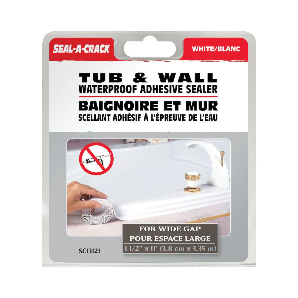 Seal-A-Crack SC13121 1-1/2" x 11ft Tub & Wall Waterproof Adhesive Sealer – White