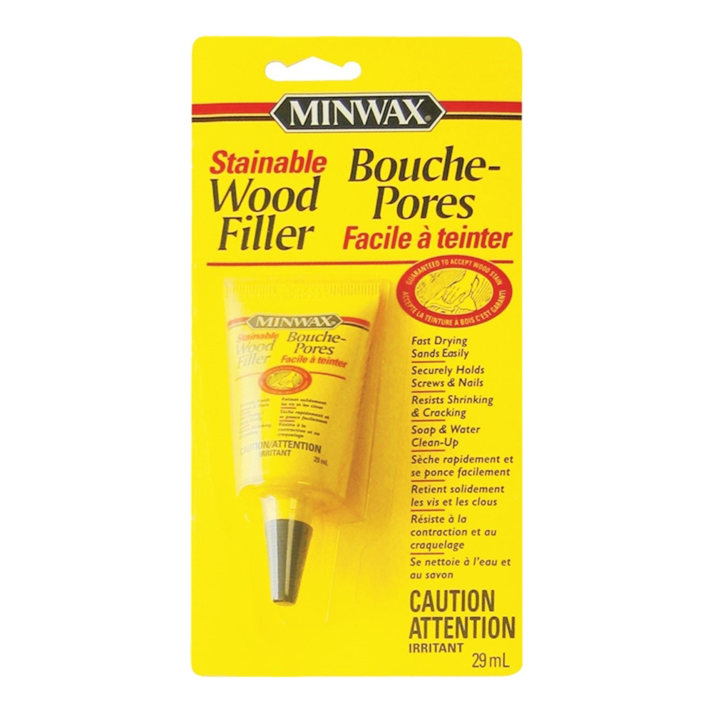 Minwax® stainable wood filler is ideal for repairing cracks, small gouges, nail holes, knot holes and other defects in all types of unfinished indoor and outdoor wood surfaces.