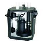 Self-contained sink/drain pump system with 1/4 HP pump and 6-gal tank for laundry/wet bar/condensate drainage, 12.5″ on / 4.5″ off float, up to 2880 GPH @ 0 ft (660 GPH @ 15 ft), 115V with 8 ft cord.