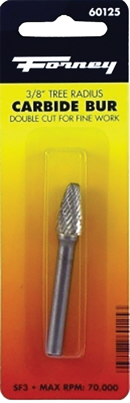 Forney 60125 Burr, 3/8 in Dia Cutting, 1/4 in Shank, Tree Radius Shank, Tungsten Carbide Cutting Edge