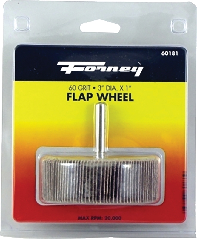 Forney 60181 Flap Wheel, 3 in Dia, 1 in Thick, 1/4 in Arbor, 60 Grit, Aluminum Oxide Abrasive