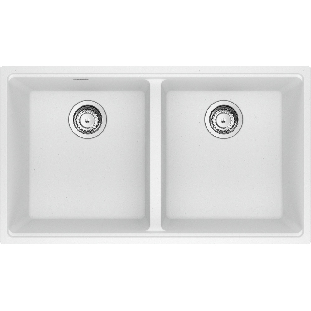 33.0-in. x 18.94-in. Undermount Fragranite Double Bowl Kitchen Sink. Maris sinks are equipped with deep capacity bowls that can easily fit baking trays, pots, and pans to be washed with maximum ease. With our easy-to-use integrated ledge system, you’ll accomplish more with your sink while making the most of your surrounding counter space. The rear drain maximizes the usable surface of the bowl and creates extra cabinet space beneath the sink. Maris Fragranite sinks are scratch-resistant, fade-resistant, and impact resistant and will retain their new appearance for years. Sink strainer assembly included.