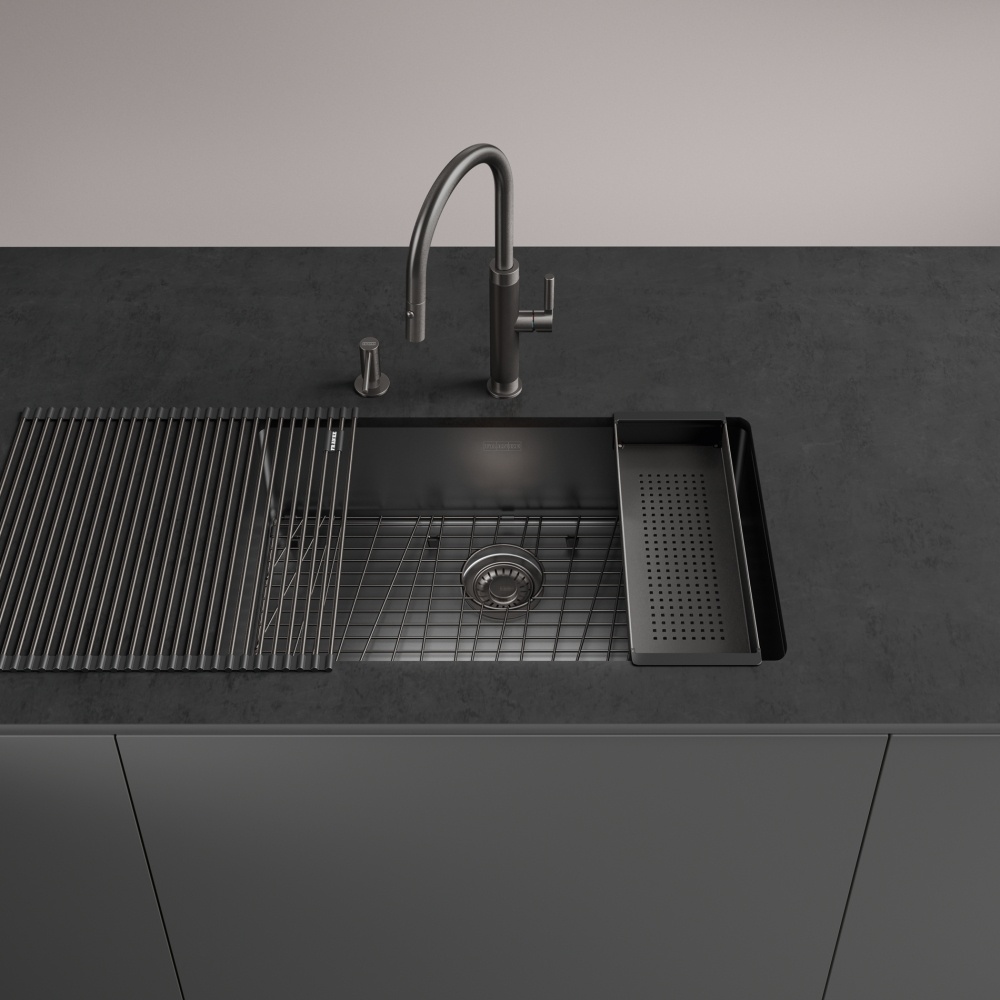 Crafted with precision and coated with F-Inox, an exclusive Franke coating, this sink resists fingerprints and marks, ensuring a pristine appearance that lasts. Designed for functionality, this workstation sink comes complete with a color-coordinated bottom grid, roller mat, and colander. These thoughtful additions enhance your kitchen experience, providing practical solutions for everyday tasks.