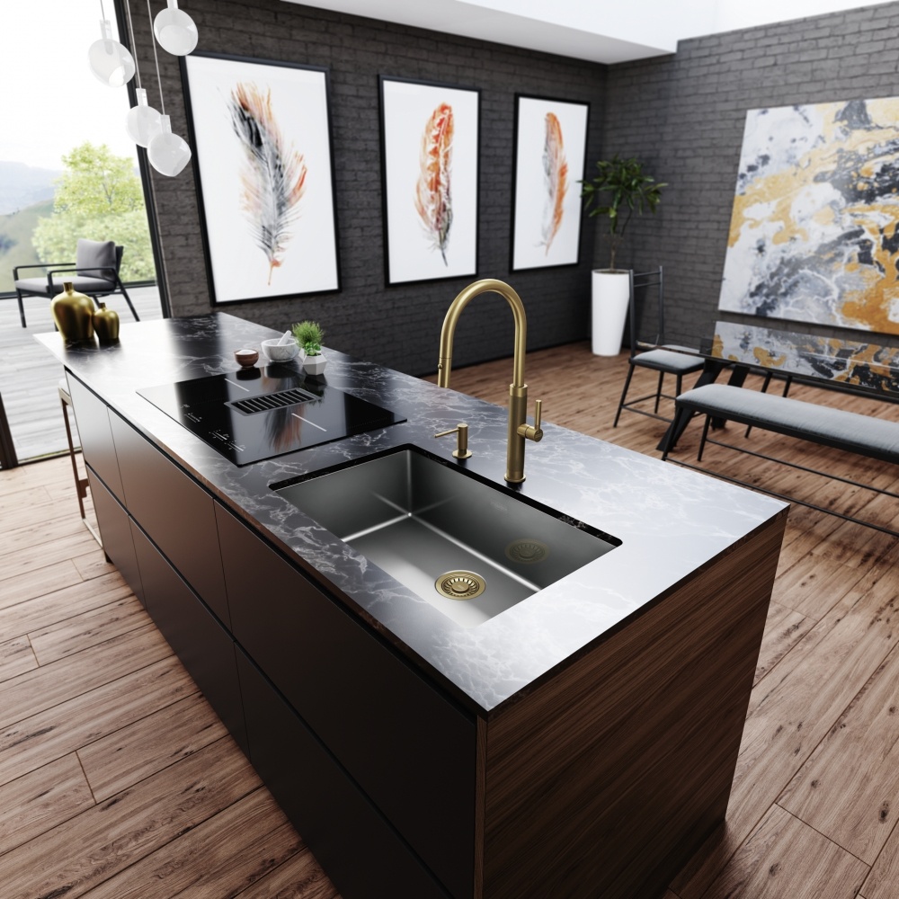 Bring an elegant, artful look to your kitchen with the on-trend metallic colors of the Mythos Masterpiece collection.