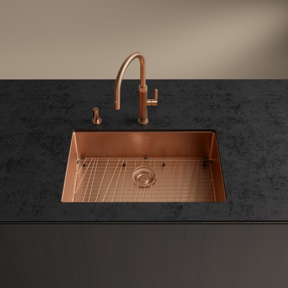 Bring an elegant, artful look to your kitchen with the on-trend metallic colors of the Mythos Masterpiece collection.
