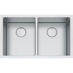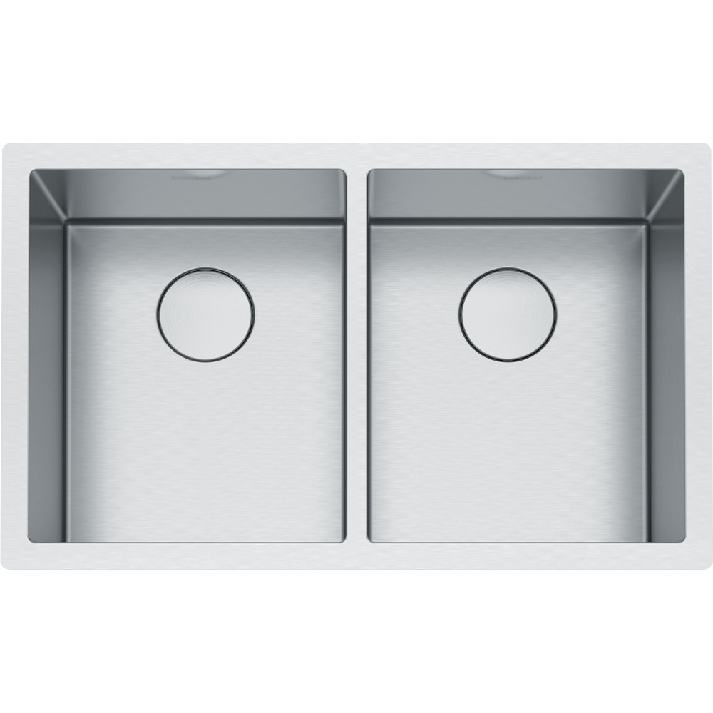 31.5-in. x 19.5-in. 16 Gauge Stainless Steel Undermount Double Bowl Kitchen Sink. The Professional sink collection boasts refined touches for the home chef. Deep bowls are undermounted with a 0.5-in reveal so that custom-fit accessories can work within the sink to create a seamless workflow while prepping meals. Made of 16-gauge commercial- grade stainless steel with a beautiful Diamond finish that takes minimal care to maintain a clean, attractive look. The removable drain cover was designed to sit flush over the drain to keep glassware from tipping over and to maximize the usable bottom surface of the bowl. Bottom Grid, Strainer Assembly and Drain Cover included.