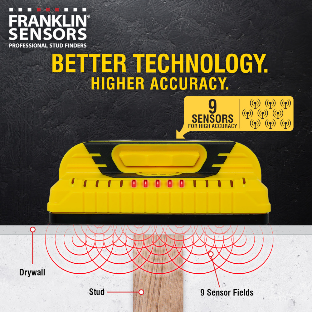 The ProSensor M155 Stud Finder delivers high-accuracy stud detection with 9 precision sensors—far more than conventional stud finders that typically use only 1 or 2. With more sensors reading changes in wall density, the M155 finds studs more reliably and requires no calibration, so you can start scanning immediately.