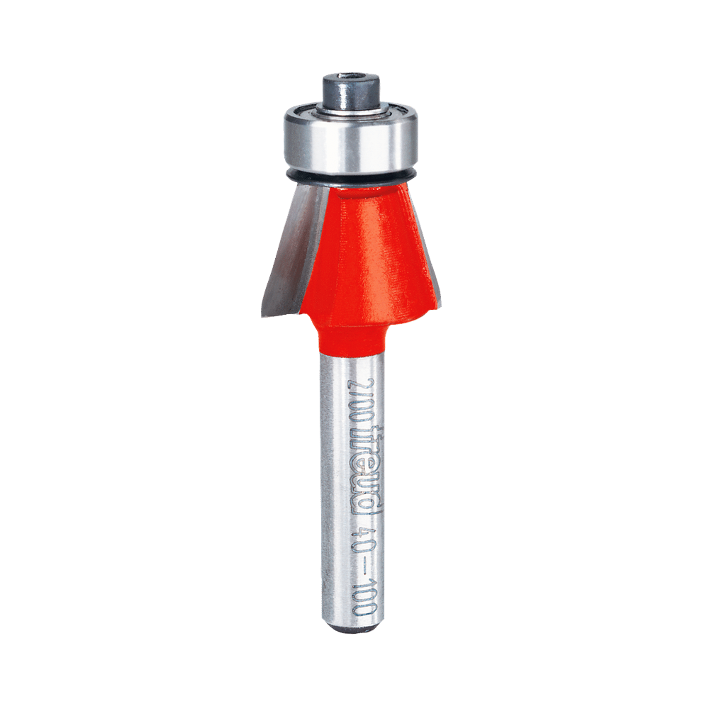 The chamfer profile seems simple, but it is a great solution for lots of multiple-sided projects, joinery, and easing edges. Creates a uniform chamfer on the edge of any work piece to add character, while retaining crisp geometric lines. #40-094 makes 16-sided pieces and #40-098 makes 12-sided pieces. Routs hardwood, softwood, plywood and composites; use in hand-held or table-mounted portable routers.