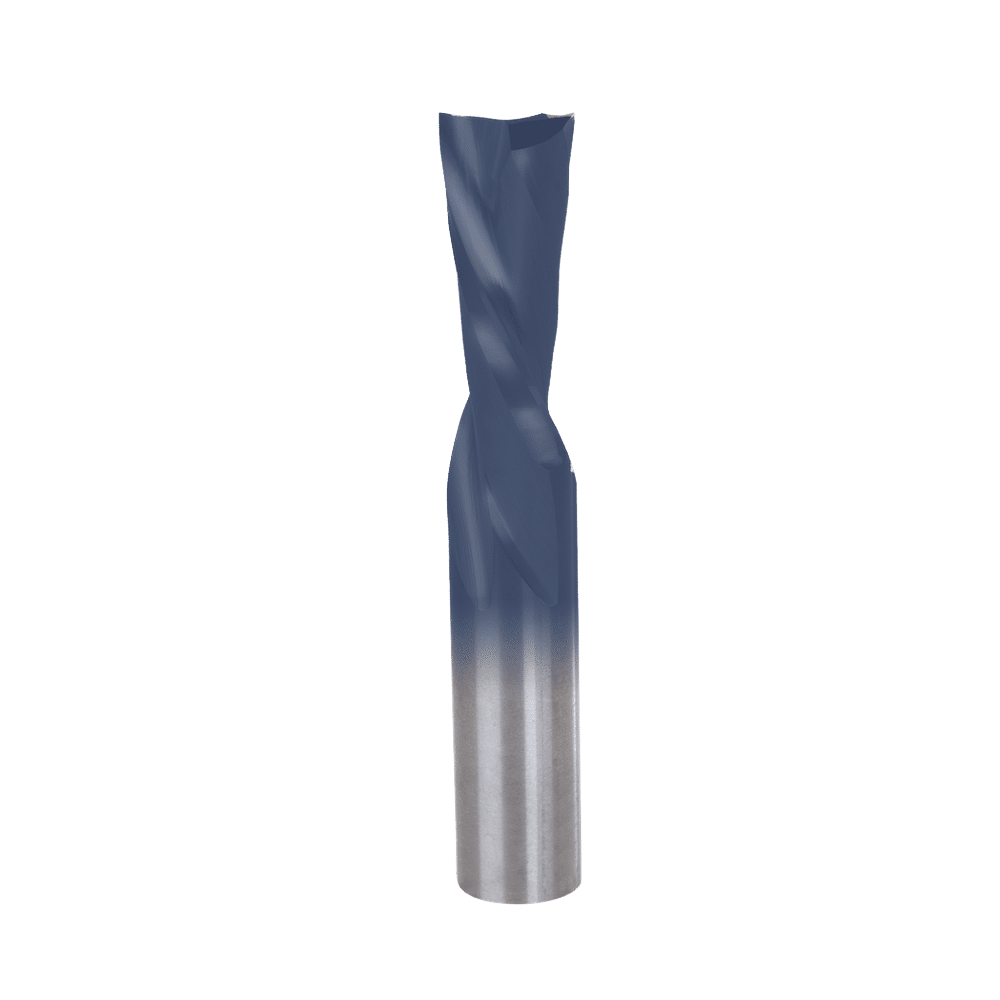 Down spiral bits are a great choice for grooves and dadoes in single-sided veneers and laminates where chip removal is not a problem, or for through-cuts where finish quality on the top surface is the primary consideration. Also cuts well in solid wood. Ideal for use in CNC routers. When used in hand-held or table-mounted routers, use care to keep router and work piece under control.